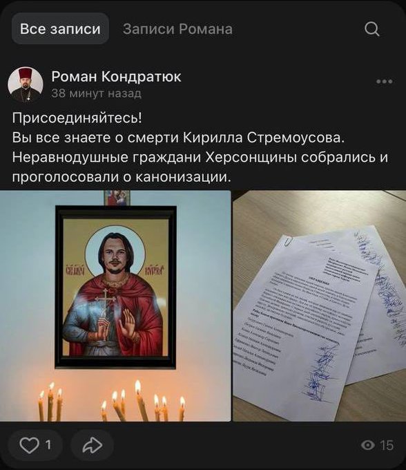 Kreml-mieliset ortodoksit haluaisivat, että Stremousov julistettaisiin pyhimykseksi. Joku ehti jo väsätä ikoninkin aiheesta. Eikö muka Puten myöntämä jonkintason sankari-tunnustus riitäkään helvetissä paraatipaikoille?