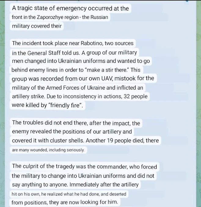 Ja miten voi olla että venäläiset Lancetit tuhoavat yhä enemmän kalustoamme taistelukentällä, emmekä me voi sille mitään - eikä meillä ei ole vastineita niille? Miten voi olla että meillä[kin] on komentajia jotka lähettävät sotilaita teuraaksi? Että tänään presidentti joutui irtisanomaan kaikki värväystoimistojen johtajat?