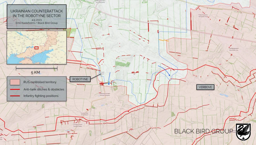 Sitäpaitsi Robotyne on ollut jo pari päivää ukrainalaisten hallussa joten tuskin siellä on omien kimppuun hyökätty. Mutta aina on tietysti mahdollista, että alueelle lähetetyt täydennykset tai vaihtomiehet olisivat joutuneet Venäjän tykistökeskitykseen. Ukrainakin on maininnut alueella käytävästä tykistötaistelusta.