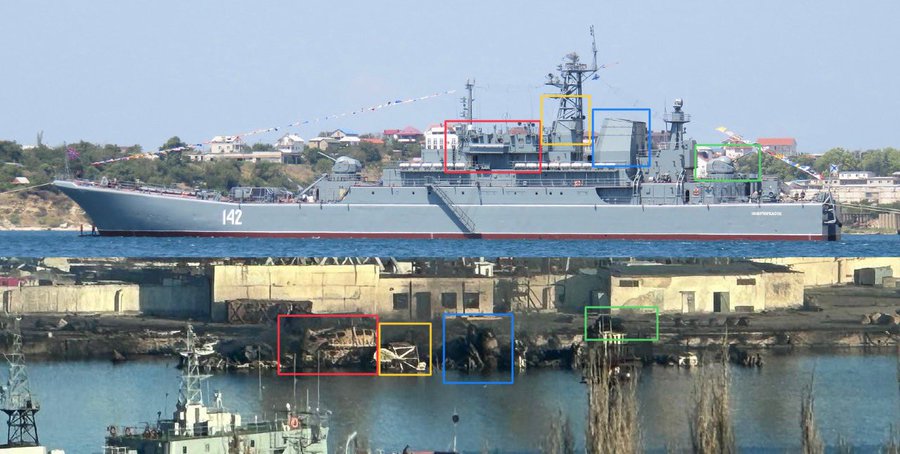 - viime yönä osuttiin isoon maihinnousualukseen Krimillä. Venäjän laivasto on joutunut vetäytymään Mustan Meren länsiosista sekä Asovan mereltä.